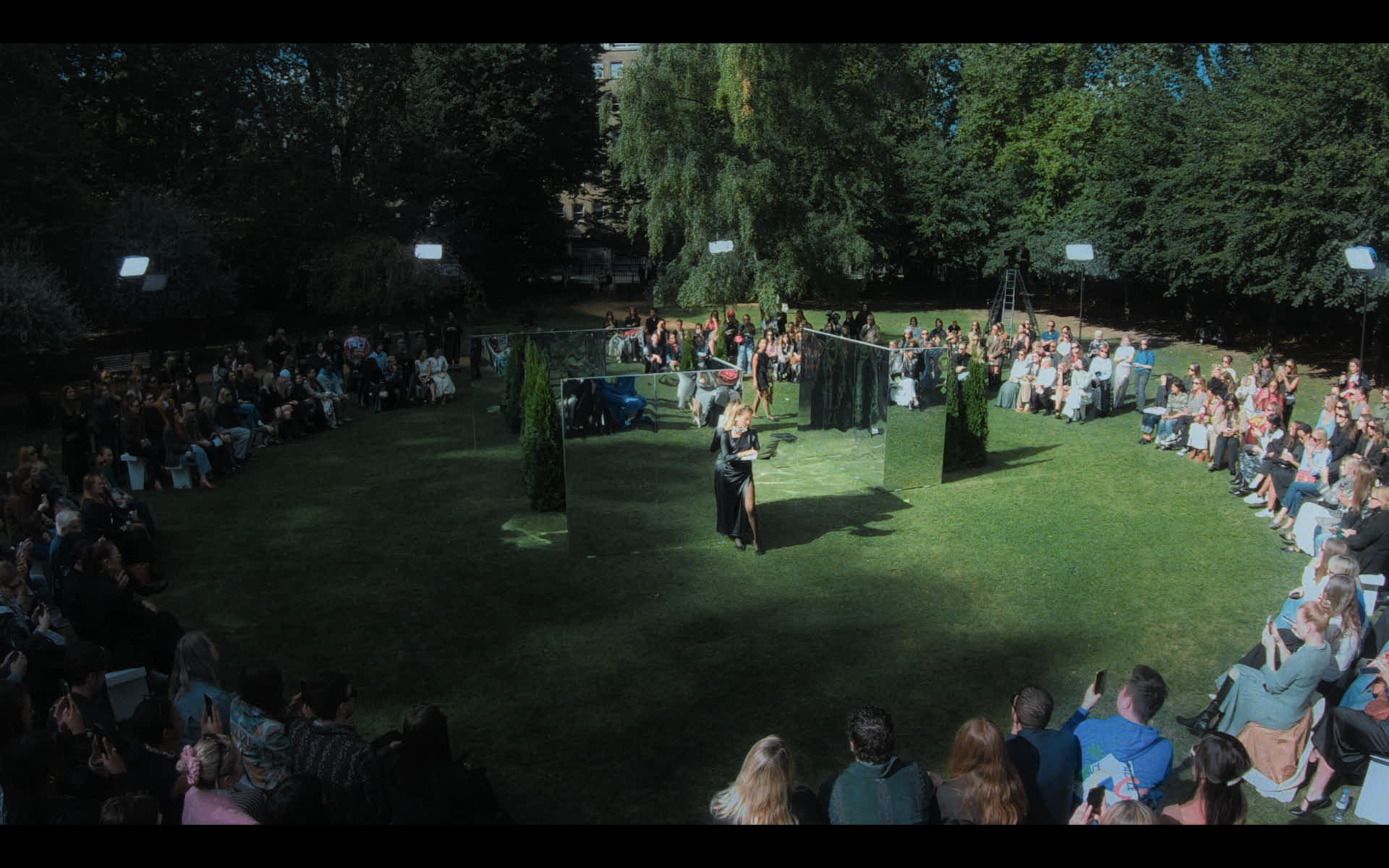 Completedworks SS25 Show by Fatima Farheen Mirza starring Dianna Agron, Lily Cole & Riz Ahmed.